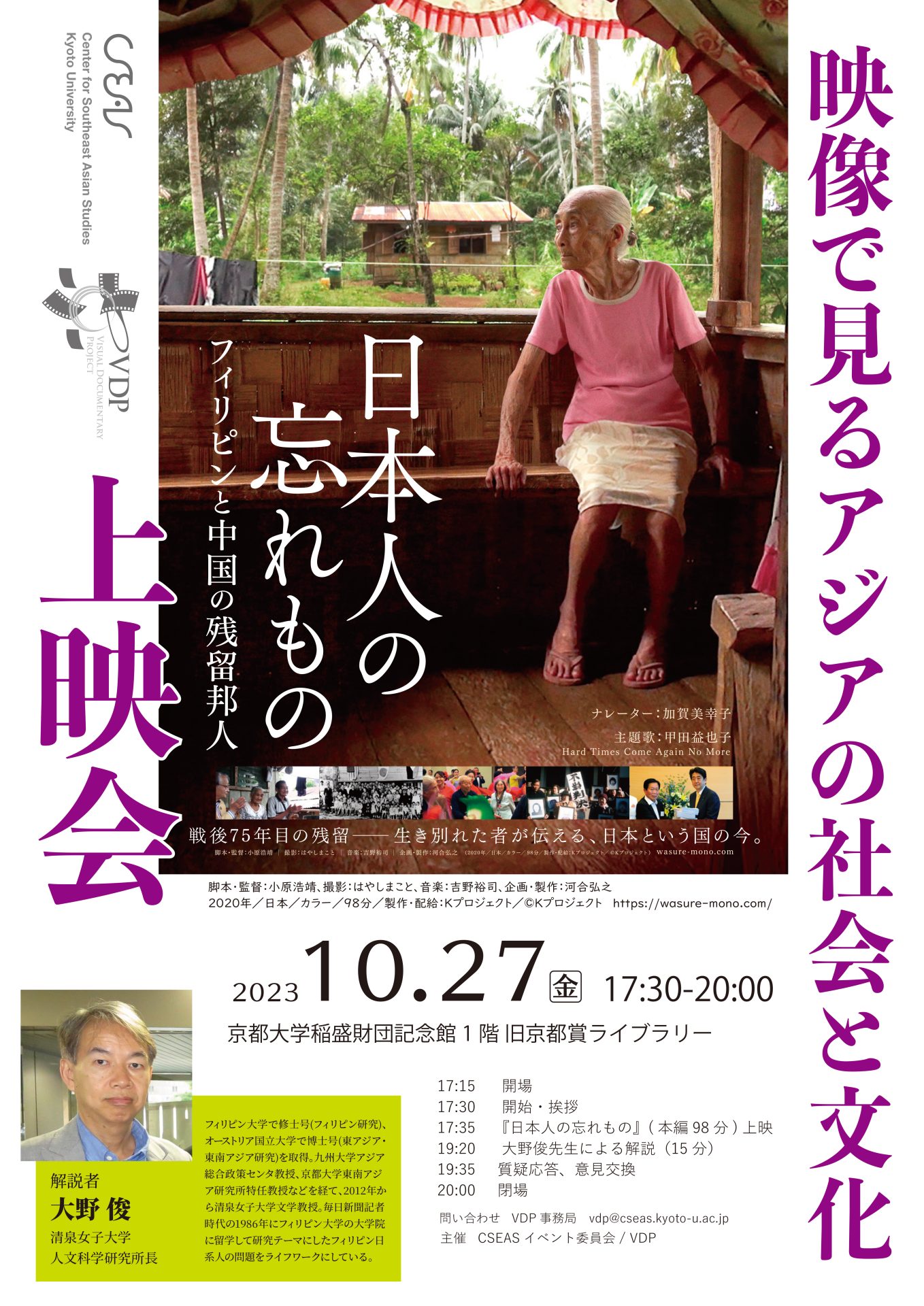 「映像で見るアジアの社会と文化」上映会『日本人の忘れもの─フィリピンと中国の残留邦人』